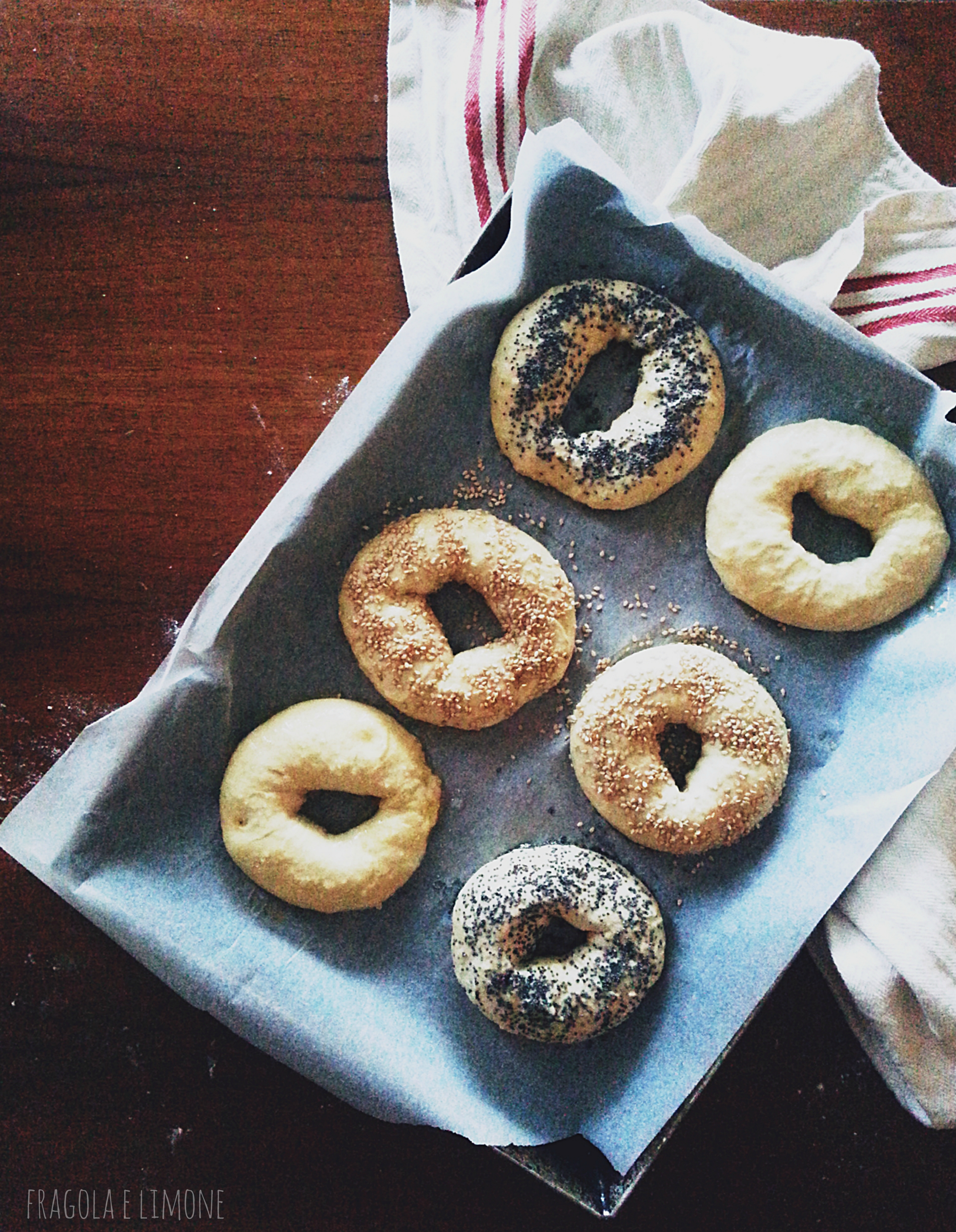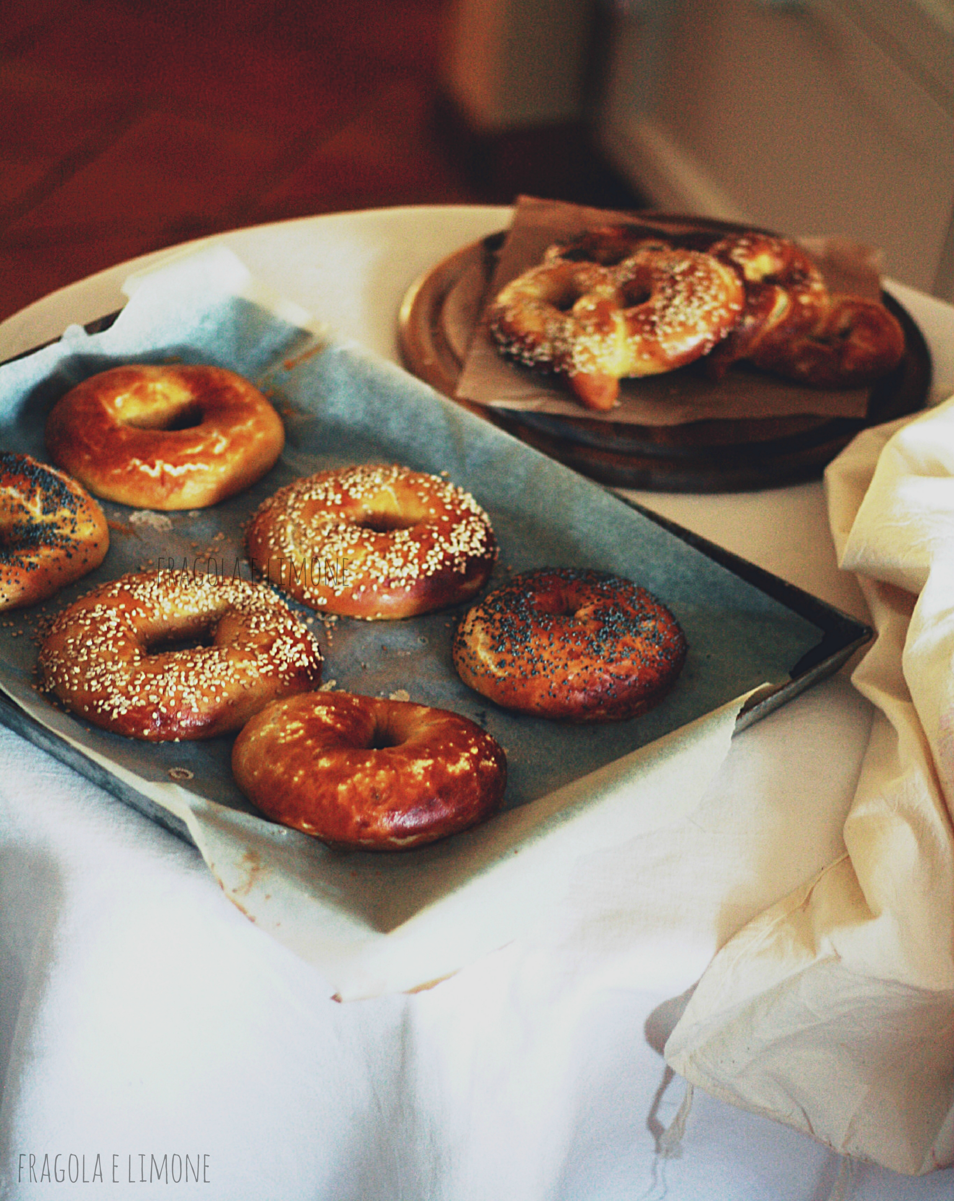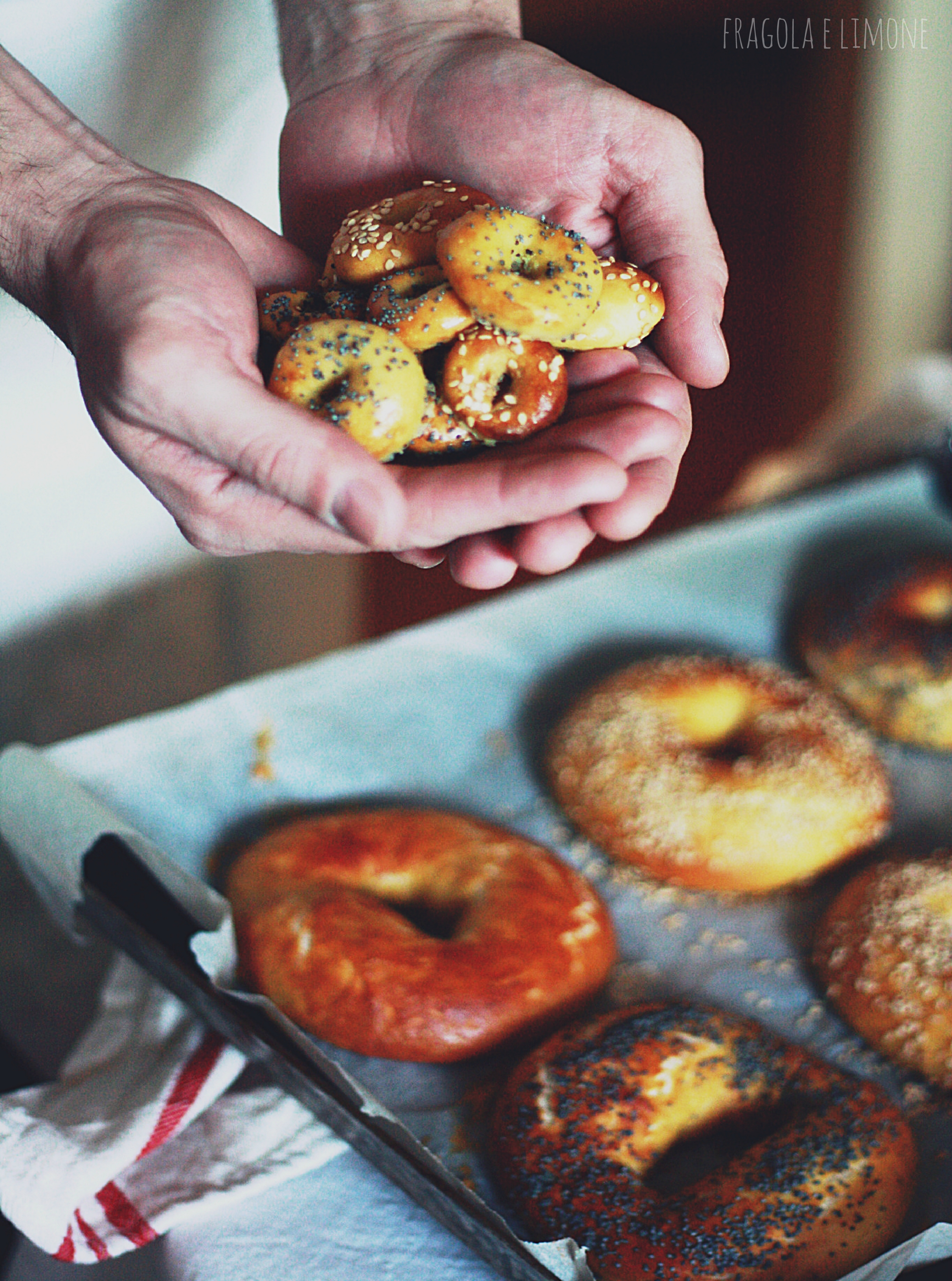 Un’accortezza: quando realizzate il buco centrale, fatelo almeno 3 volte più largo del risultato finale che volete ottenere: si gonfiano molto già nel passaggio in acqua bollente, ed in forno la lievitazione prosegue ulteriormente.