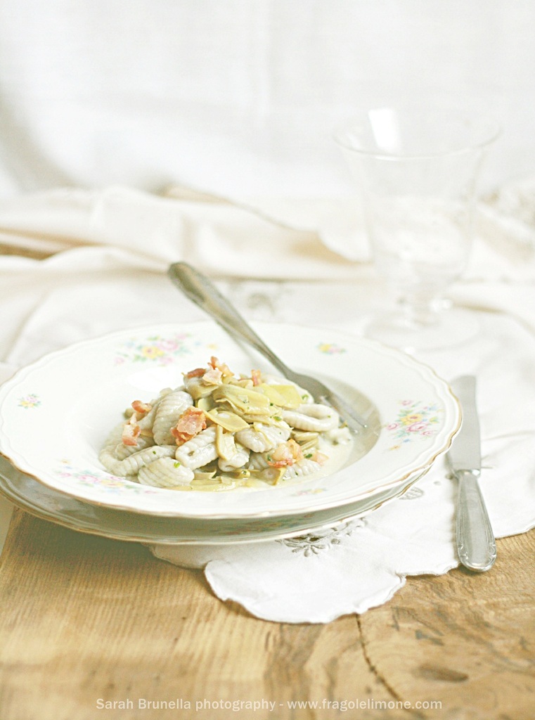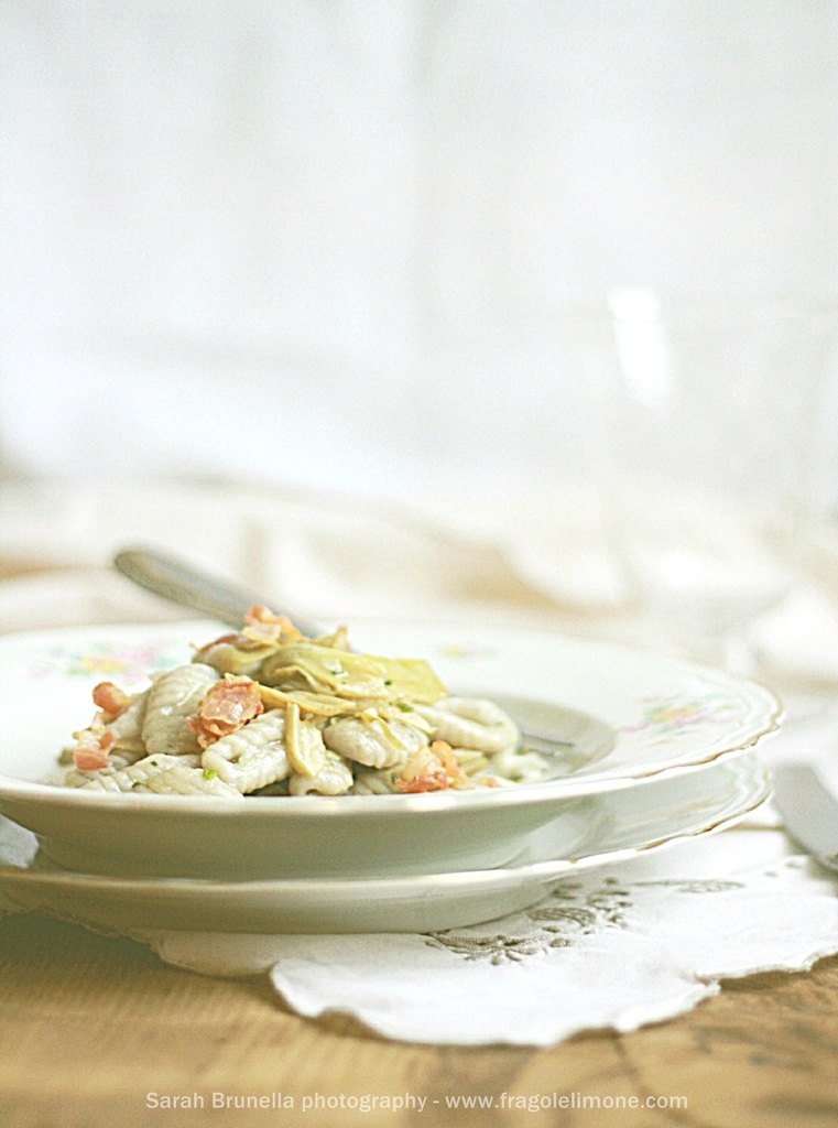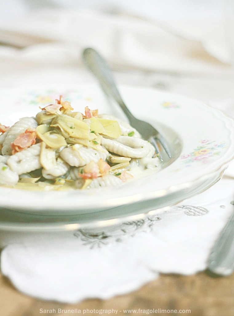 GNOCCHI CON CREMA DI TOPINAMBUR, CARCIOFI E PANCETTA CROCCANTE